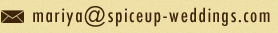 SPICE UP WEDDINGS 公式Webサイトにお越しいただき誠にありがとうございます。 只今ホームページ製作中につき、ご意見・ご質問などございましたら下記のメールアドレスより、お気軽にお問い合わせ下さい。